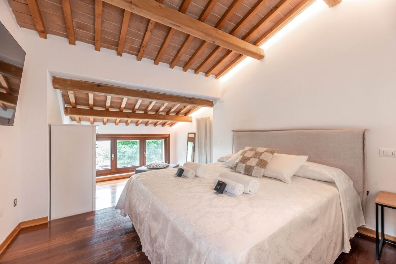 La casa, appena ristrutturata, unisce il fascino rustico delle travi a vista e delle mura in pietra con comfort moderni e una cura particolare nei dettagli.